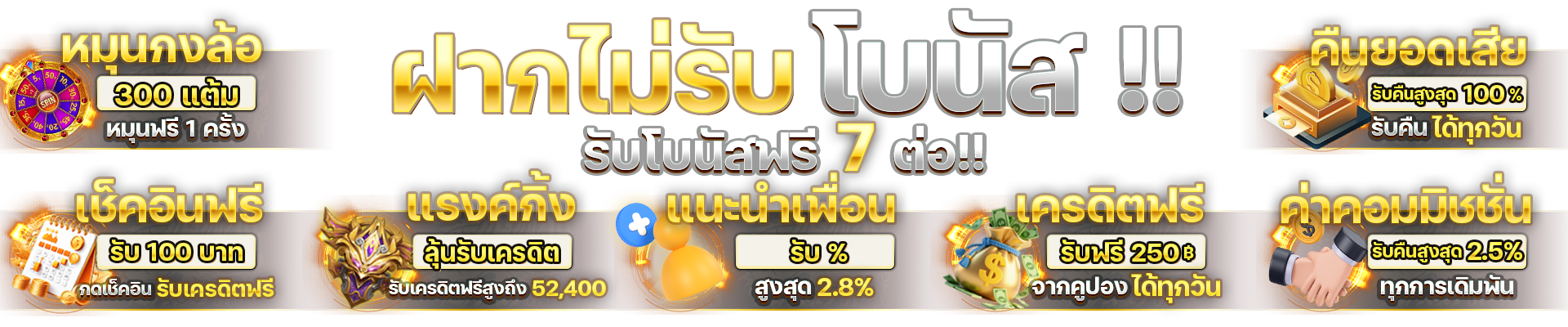 ตอบ : มีโบนัสต้อนรับ 100% สำหรับสมาชิกใหม่ เครดิตคืนรายวัน 10% โบนัสแนะนำเพื่อน 20% และกิจกรรมแจกเครดิตฟรีในเทศกาลสำคัญ